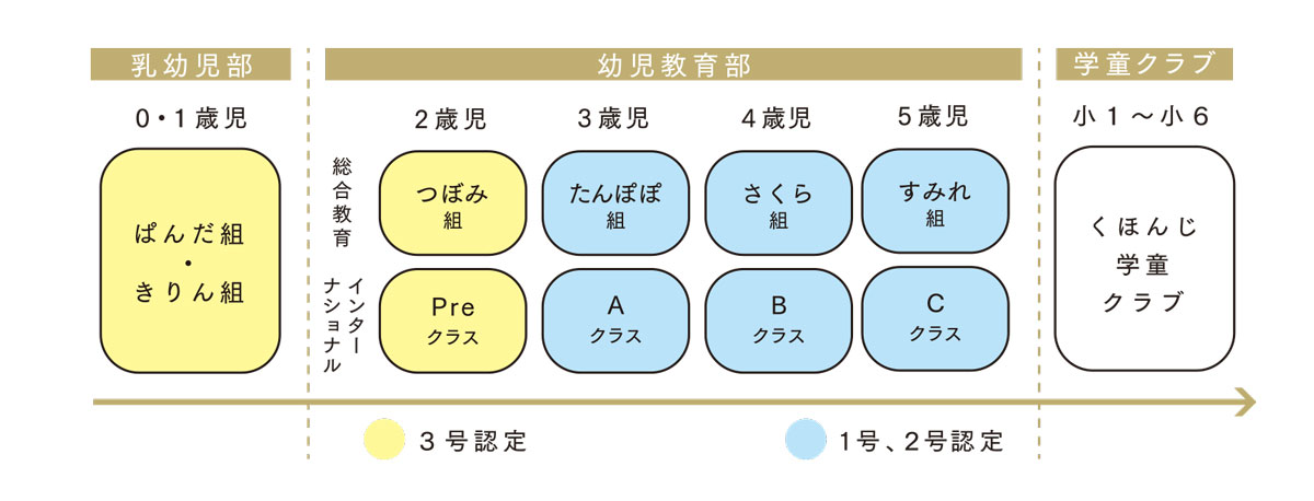- 2歳(最年少)・3歳(年少)・4歳(年中)・5歳(年長)